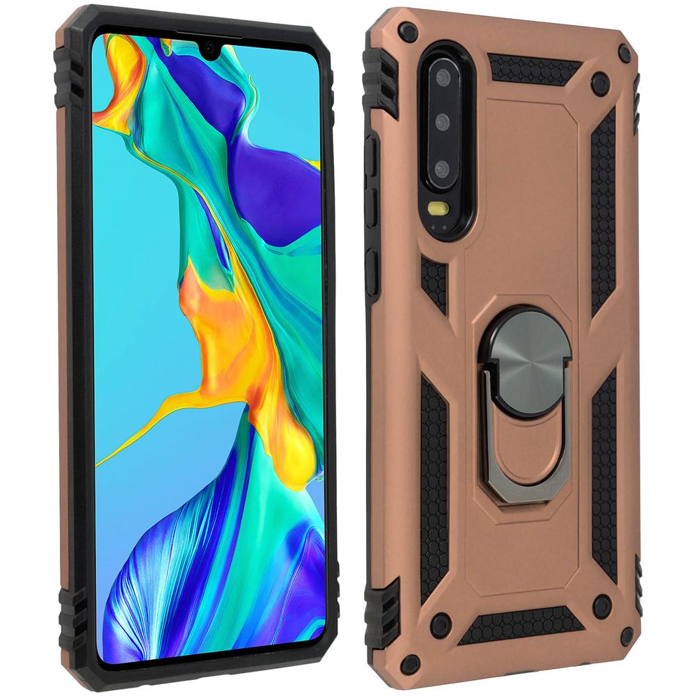 Cover Huawei P30 Bi-materia Rigida Morbida Anello Magnetico Stand Rosa Gold