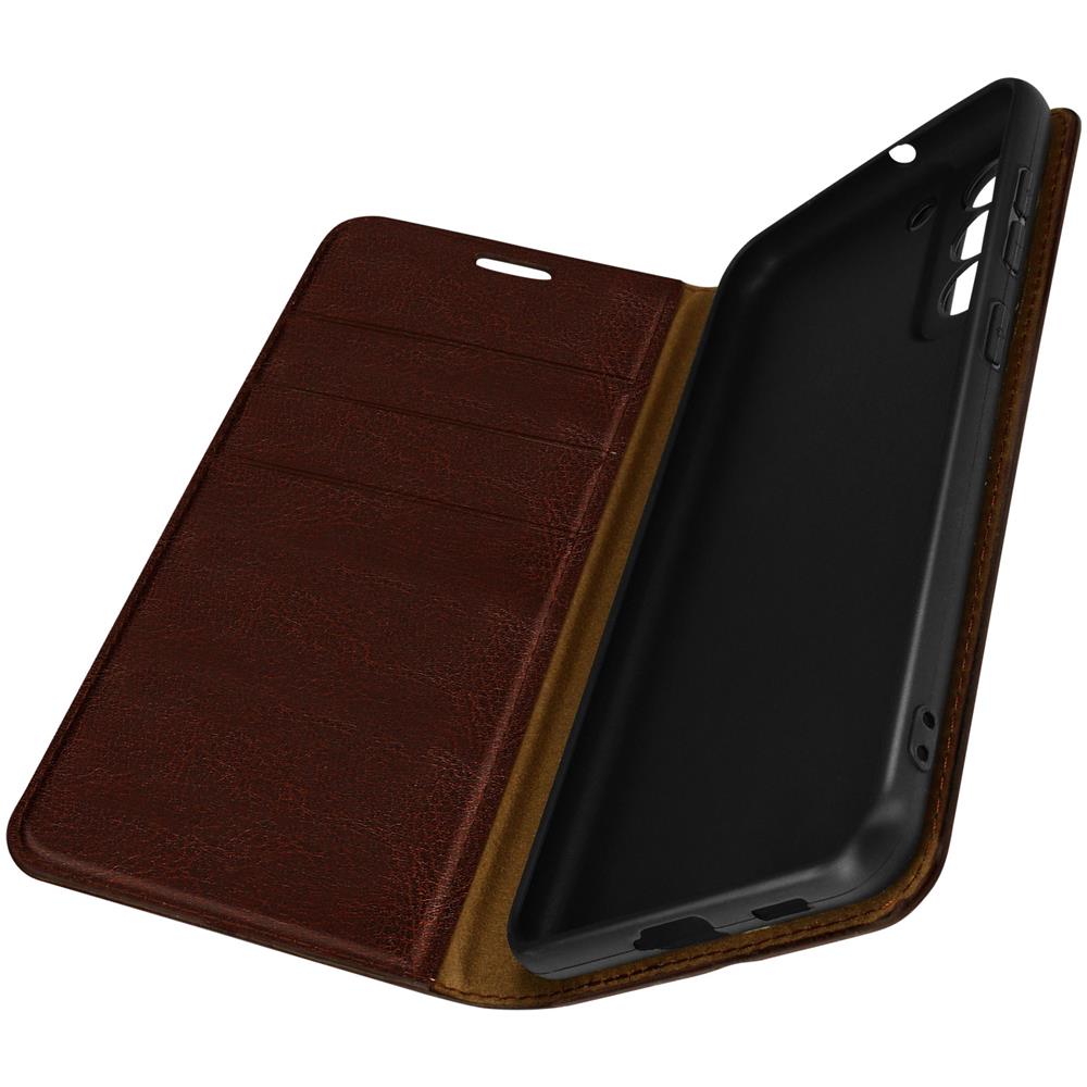Custodia Per Galaxy S21 Fe In Vera Pelle Con Portafoglio Marrone Scuro