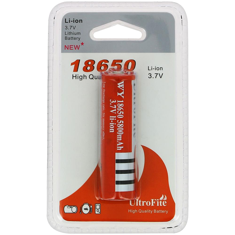Pila ricaricabile wy 18650 ultrafire. Capacità di carica di 5800 mah con tensione da 3.7v. Antisurriscaldamento e antisovraccarico per un utilizzo sicuro. Compatibile con lampade, fotocamere, dispositivi elettronici che richiedono una batteria.