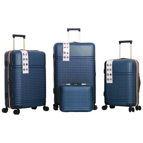 Set 4 Valigie Rigide In Abs Da Viaggio Blu Con Ruote Easy Roll E Beauty Case