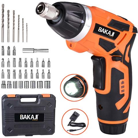 Bakaji è fornito di ben 38 punte intercambiabili tra di loro tra: 24 punte per avvitare da 25mm di varie grandezze e forme, 8 bussole per bulloni e 6 punte da trapano di varie dimensioni in questo modo potrete avvitare e forare con la massima facilità con un singolo attrezzo.l'intero set è custodito in una bellissima valigetta in plastica dura molto resistente con vani interni per la custodia d...