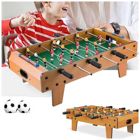 Calcio Balilla Biliardino Da Tavolo In Legno Con 6 Stecche E Piedini 70x37x17cm