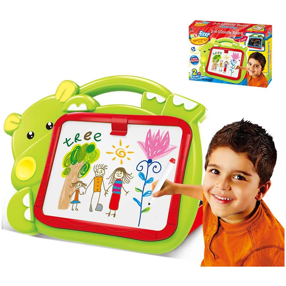 Lavagna Lavagnetta Per Bambini Hippo 2in1 Con Gessetti Cassino Pennarelli Verde
