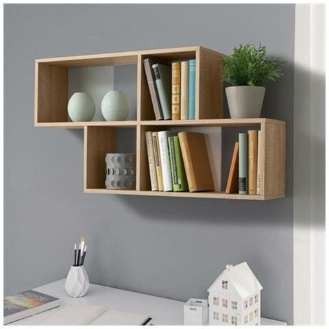 Libreria Scaffale Parete 4 Mensole Ripiani Design Moderno Legno Bianco Quercia