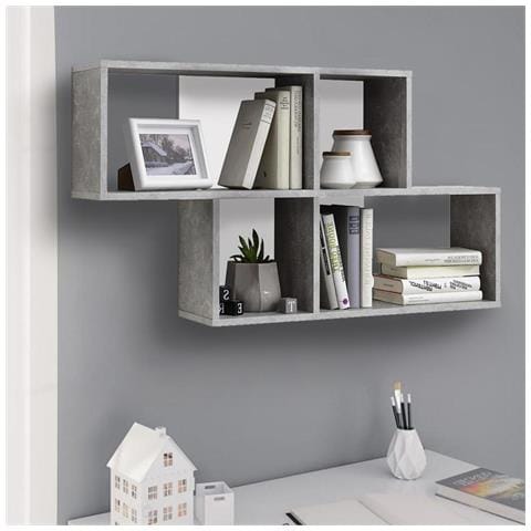 Libreria Scaffale Parete 4 Mensole Ripiani Design Moderno Legno Grigio Bianco