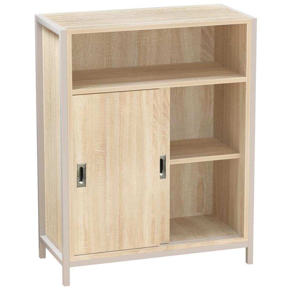 Mobile Mobiletto Basso Libreria Moderno 2 Ante Scorrevole e 3 Ripiani Naturale