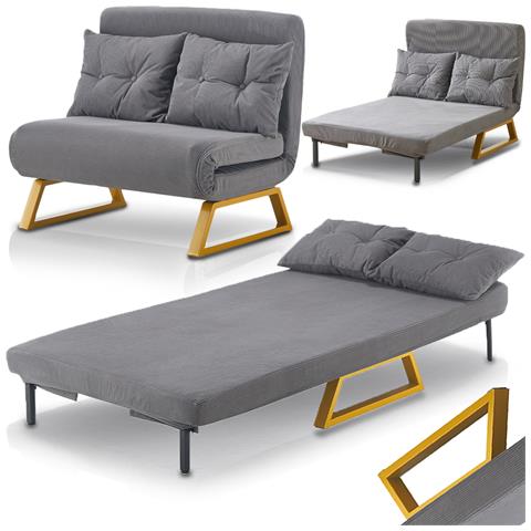Poltrona Letto Reclinabile 2 Posti Chaise Lounge In Velluto Convertibile Grigio
