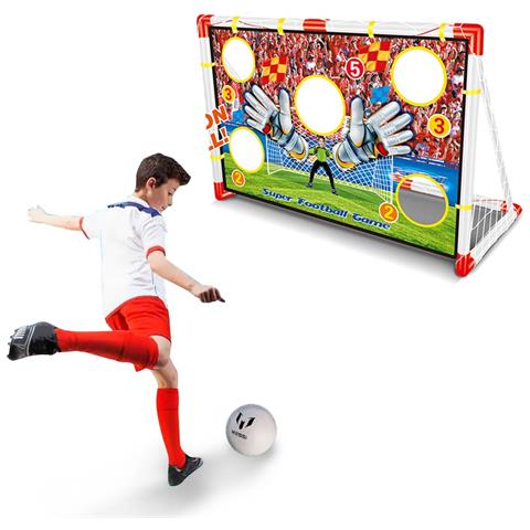 Diventa un grande campione con questa bellissima porta da calcio per l'allenamento di rigori e punizioni!la porta grande 120 x 73 cm è dotata di un particolare telo rimovibile forato, ogni foro corrisponde ad un punteggio, che varia da 1 a 5 punti.allenati per affinare la tua tecnica e sfida i tuoi amici in emozionanti sfide di calcio ai rigori!incluso nella confezione un pallone da calcio.l'et...