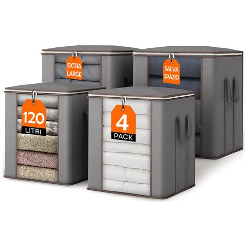 Set 4 Sacchetti Contenitori Extra Large 120l Manici Rinforzati Organizer Casa