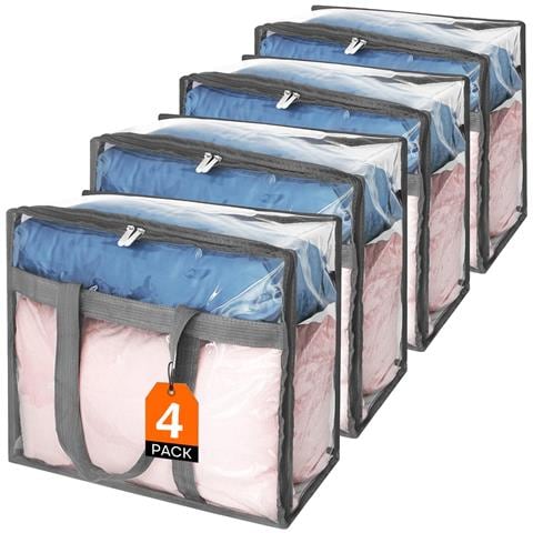 Set 4 Sacchetti Trasparenti In Pvc 45x38x23 Cm Con Cerniere E Manici Rinforzati
