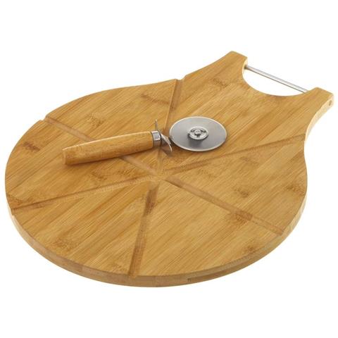 Tagliere Vassoio Pizza in Legno di Bambu con Guide + Rotella Tagliapizza 38x32cm