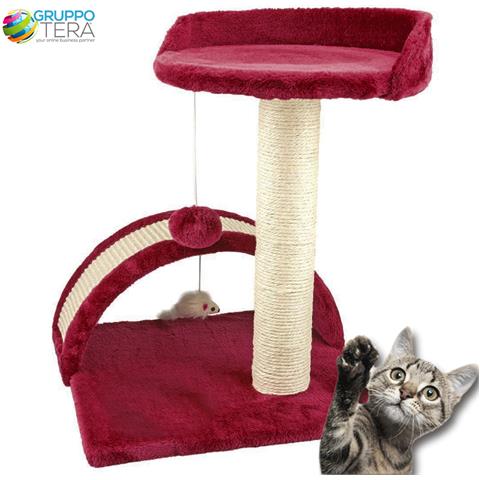 Tiragraffi Per Gatti Rosso Con Gioco Pallina Palo 50cm Topolino Tunnel Soffice