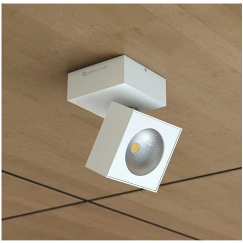 Plafoniera a led orientabile mini rubyc quadrata da soffitto o da parete da 7 watt di potenza, tricolore. Dimensioni 75x75 mm e altezza di 83 mm. Si fissa a soffitto o a parete mediante apposite viti e tasselli. Il driver è integrato nella lampada. La colorazione di luce è variabile grazie ad uno switch integrato. questo plafoniera a led ha un angolo di apertura stretto, di conseguenza è adatt...