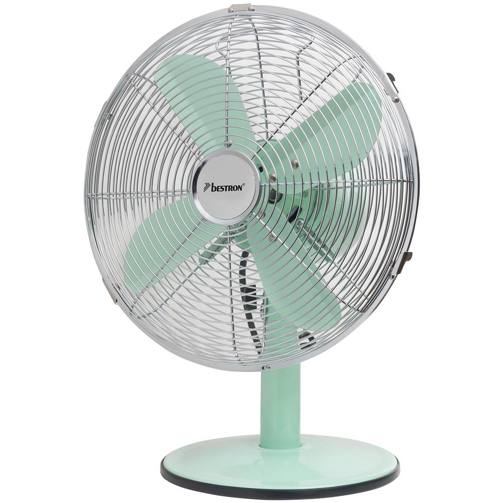 Bestron ventilatore da tavolo 35w 35cm menta dft35m l'elegante ventilatore da tavolo dft35m con il suo design retrò menta sarà perfetto per adattarsi alla tua casa! - ventilatore da tavolo retrò potenza: 35 w. Diametro cesto: 35 cm flusso d'aria: 47,42 m³ / min velocità dell'aria: 3,36 m / sec livello di rumore: 59,49 db 3 velocità funzione di oscillazione di 75 ° regolazione dell'inclinazione ...