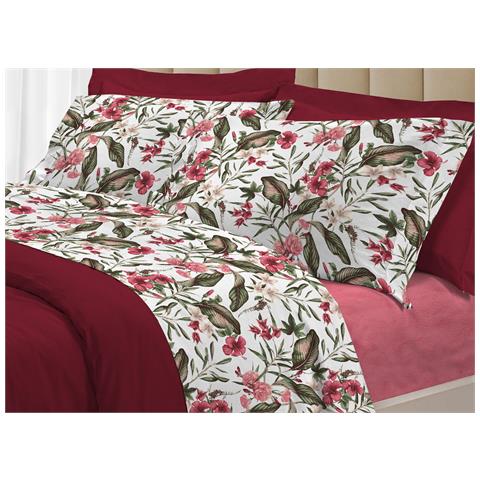 Completo Lenzuola Letto 100% Cotone Italy 3027 Disegno Elena Vintage Piazza E Mezza Rosso