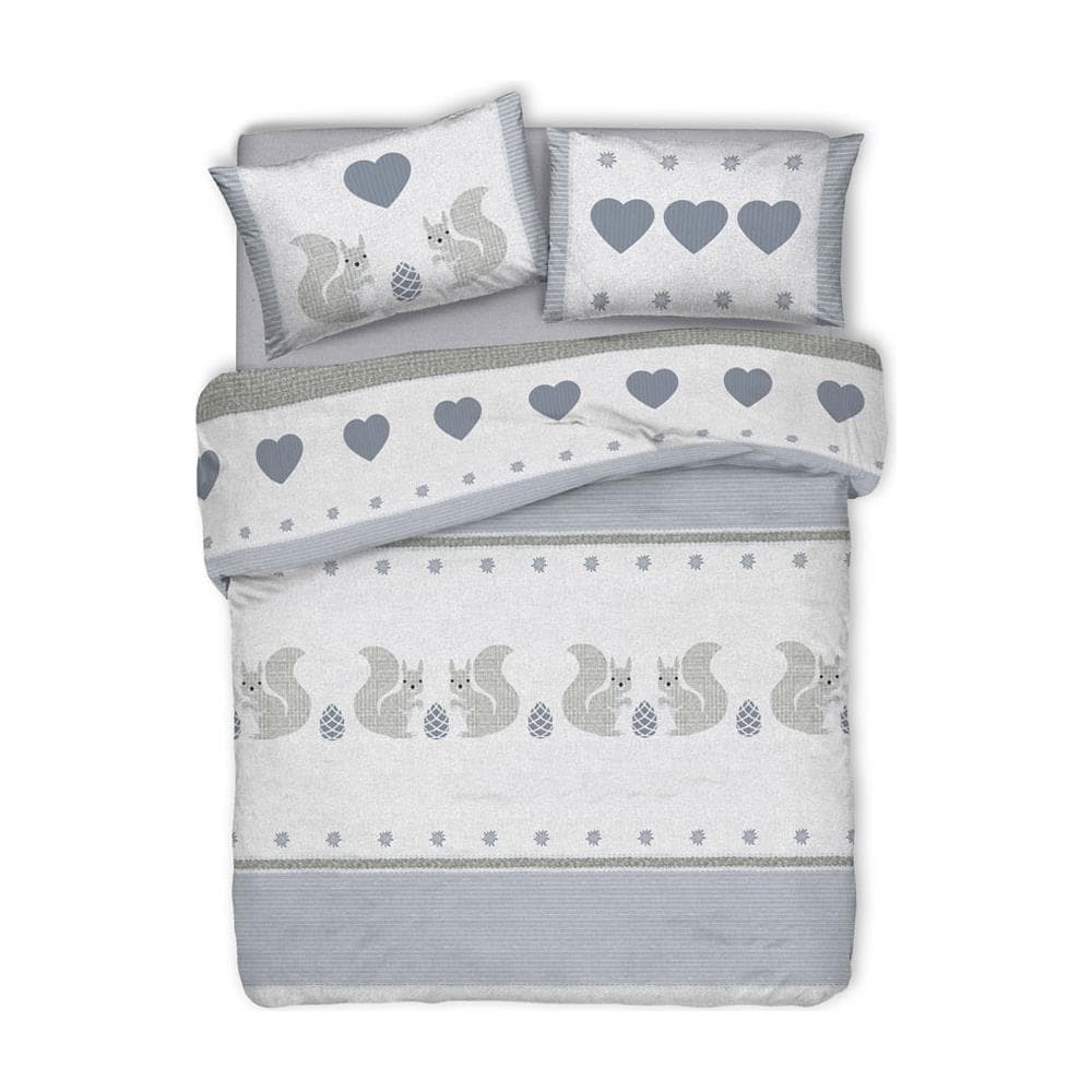 Copripiumino Sacco Piumone Pensieri Delicati 100% Cotone Disegno Scoiattolo Matrimoniale Grigio
