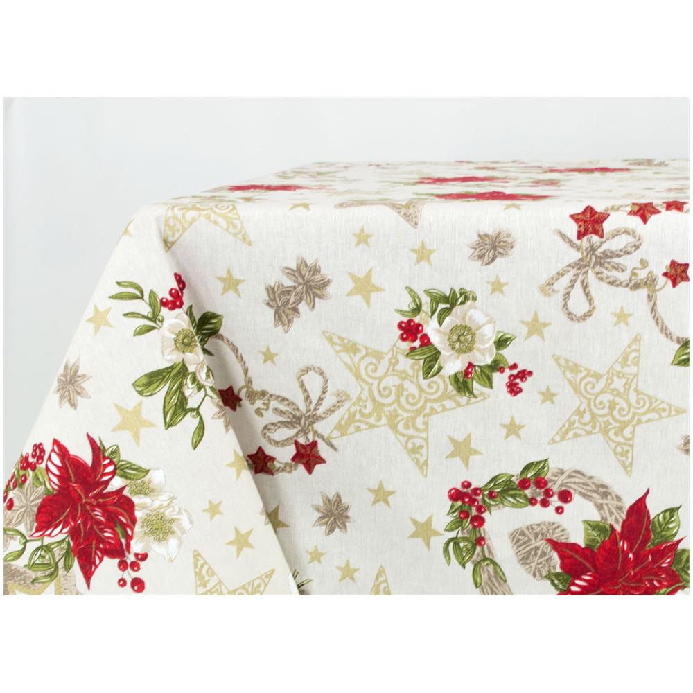 Tovaglia Natalizia In Cotone Disegno Anis Colore Naturale 140x180 Naturale