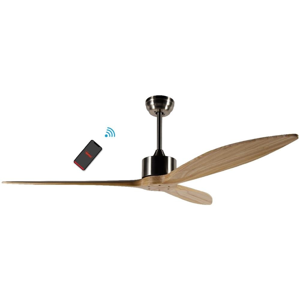Ventilatore da soffitto 152cm, con wifi. Questo ventilatore da soffitto è la soluzione perfetta per rinfrescare le torride giornate estive. Grazie al suo design è ideale per rendere originale ogni ambiente della casa. Kit di montaggio incluso, facile da pulire e facile da montare. collezione: bora colore: argento, marrone materiale: metallo, plastica set: 1 dimensioni prodotto: l152xp...