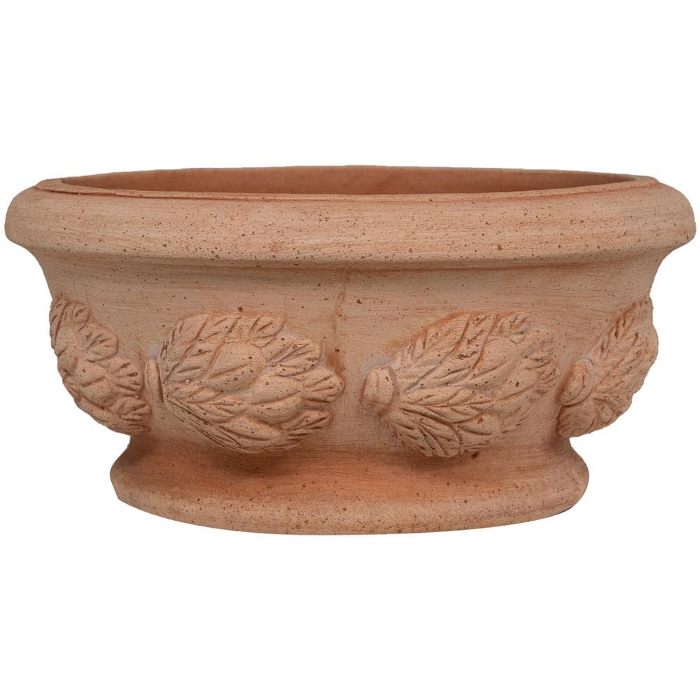 Vaso realizzato a mano con argilla toscana in galestro antigeliva, di dimensioni diametro 30 cm, altezza 14 cm. La realizzazione e la cottura seguono le vecchie tradizioni toscane. Qualità della terra e sistema di cottura rendono il prodotto molto stente al gelo e a tutti gli agenti atmosferici. La lavorazione interamente fatta a mano rende ogni articolo un pezzo unico. Per gli amanti dell'arre...