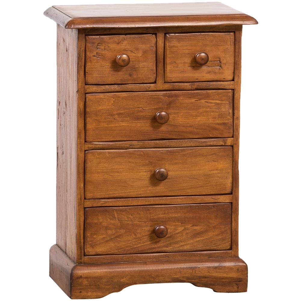 Comodino in stile country interamente realizzato in legno massello di tiglio di dimensioni 51x30x74 cm. La produzione artigianale made in italy, ne garantisce qualità estetiche e di solidità senza paragoni. Pratico e funzionale grazie a cinque cassetti realizzati con incastri a coda di rondine e pomelli in legno, dal design semplice, è ideale per completare qualsiasi arredo