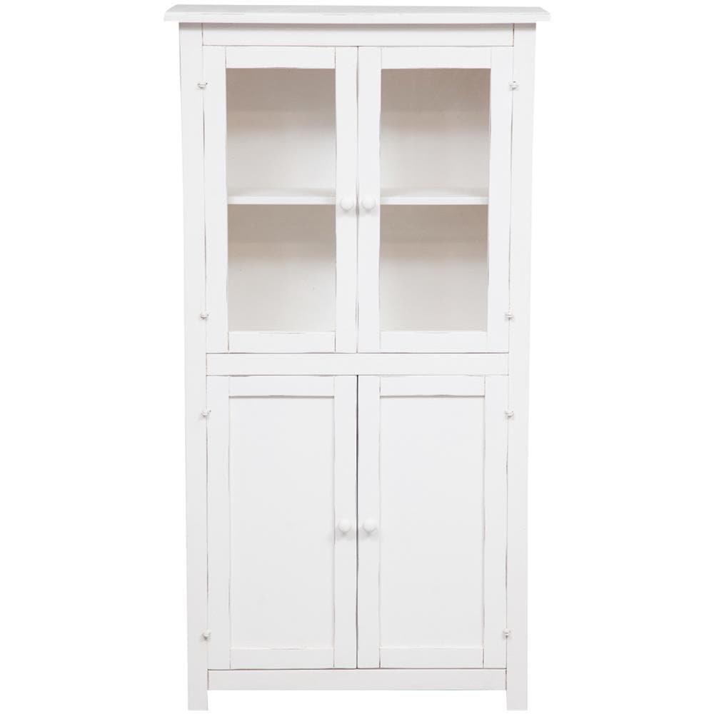 Vetrina Credenza Country In Legno Massello Di Tiglio Finitura Bianca Anticata L68xpr25xh130 Cm. Made In Italy