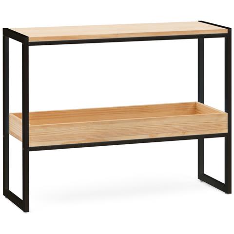 Console Icub Con Vassoio 100x32x75cm Nero In Legno Di Pino Massiccio Finitura Naturale Stile Industriale Box Furniture