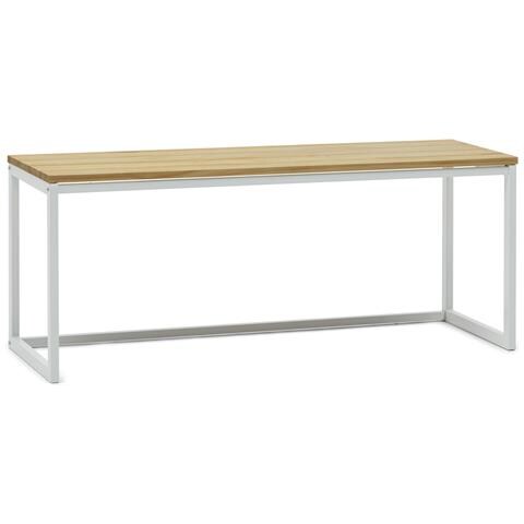 Panca à sala da pranzo icub three in stile nordico scandinavo. 40cm x 100cm x 45cm. Struttura in acciaio bianca. Piano in legno di pino massiccio de 18mm. Finitura “efetto naturale”.