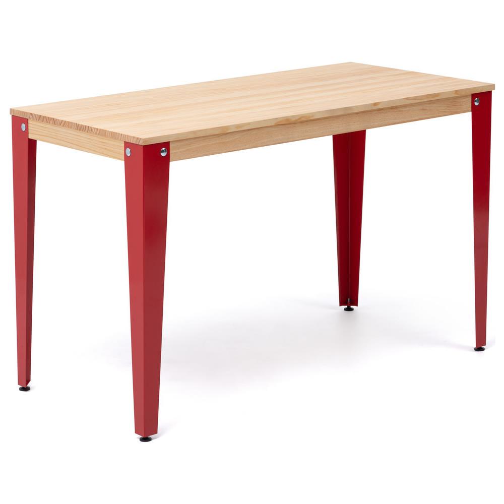 Tavolo da pranzo lunds in stile nordico scandinavo. Prof: 90cm x larg: 160cm x altezza: 75cm. Struttura rosso. Piano in legno massiccio di pino, de 18mm. Piedini in acciaio da 2 mm.