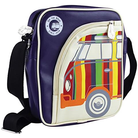 Borsa a tracolla sportiva in formato orizzontale con motivo vintage del vw bus t1. La borsa è fatta di di similpelle di alta qualità (pu). La divisone interiore con dipartimento imbottito per tablet (fino a 10,1 pollici), uno scompartimento principale e tanti compartimenti piccoli per penne, smartphone o portafoglio, rendono questa borsa molto pratica per l'uso giornaliero. Beauty case, agenda ...