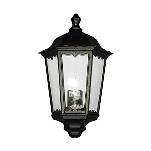 In alluminio pressofuso nero finitura opaca, schermo in vetro, 3 facce. Attacco E27 - IP44. Dimensioni 22x26xH44 cm.