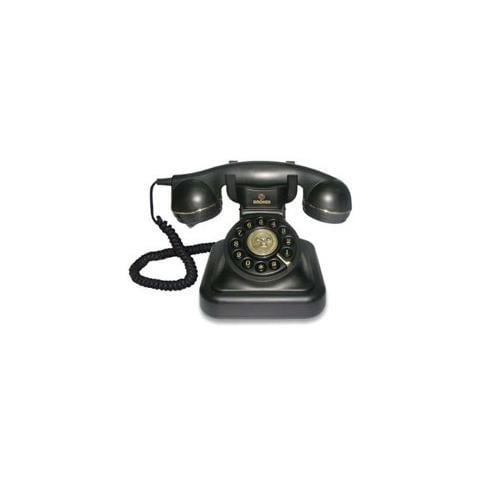 Telefono fisso dalla linea retrò, tastiera numerica circolare a selezione decadica / multifrequenza. Tasto ripetizione ultimo numero selezionato. Regolazione volume suoneria.