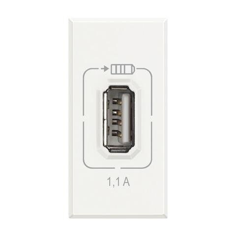 Caricatore usb con tensione 5 vd. c. Per la sola ricarica di dispositivi elettronici fino a 1100 ma quali cellulari, smartphones, tablets e similari - alimentazione 230 va. c. - 1 modulo - bianco