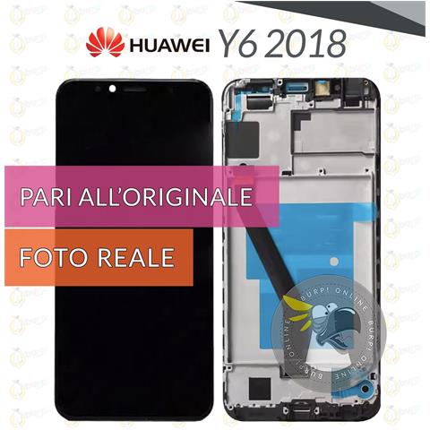 Display huawei y6 2018 atu-l11 l21 touch screen schermo frame lcd vetro nero pari a originale.