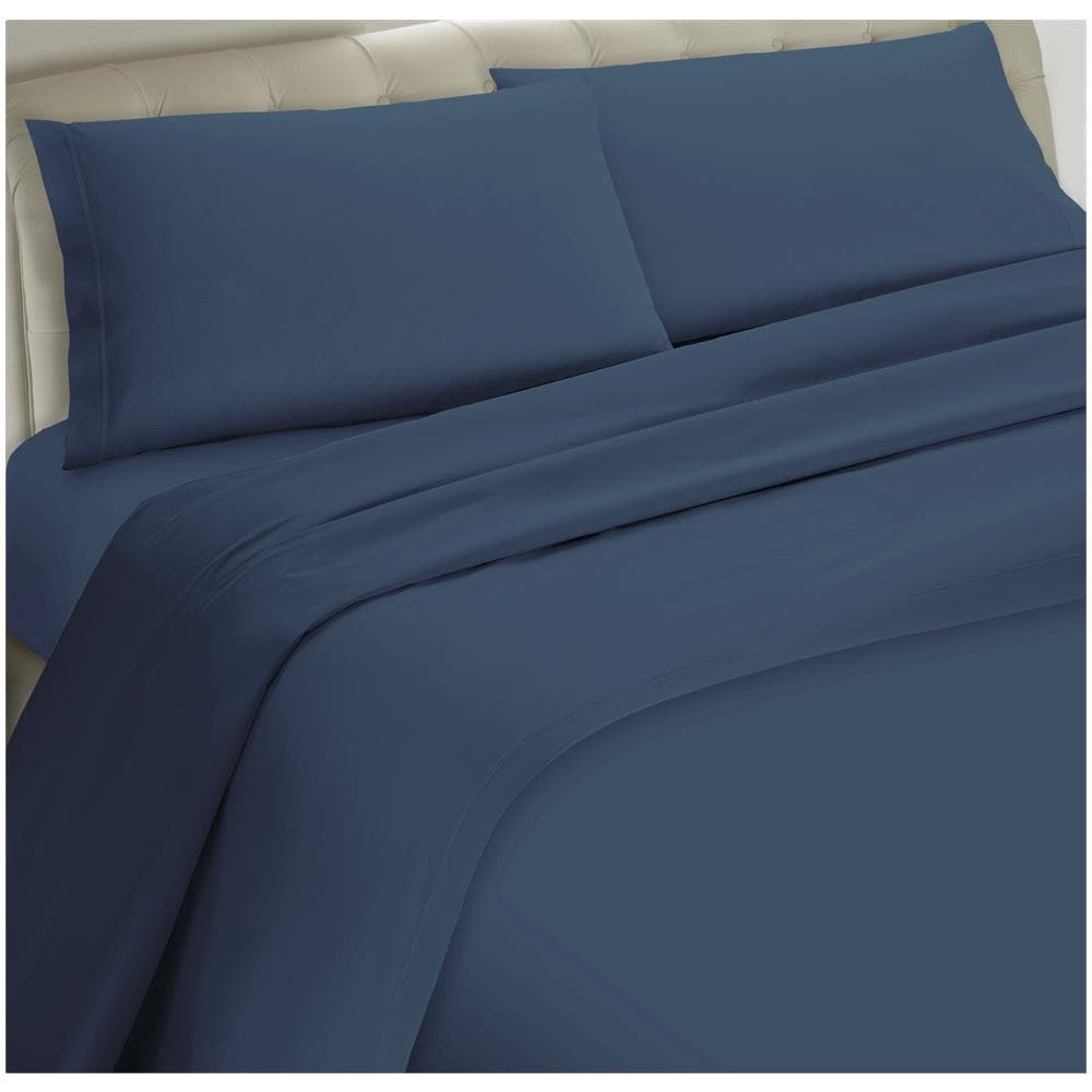 Set Completo Lenzuola 100% Microfibra - Matrimoniale, Lenzuolo Sopra 240 X 290 Cm, Lenzuolo Sotto 160/170 X 190/200 X 25 Cm, 2 Federe 52 X 82 Cm - Blu