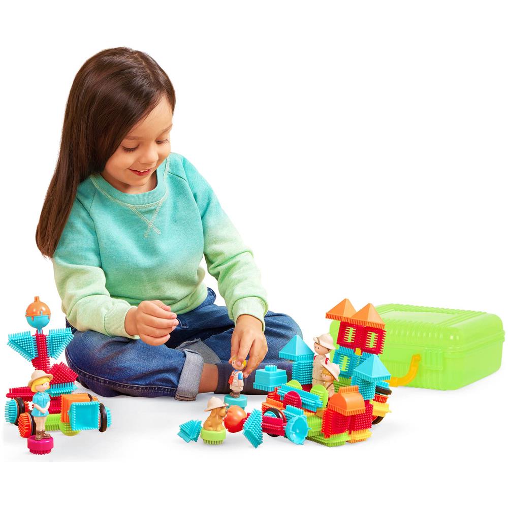 Battat- blocchi di setole- blocchi di costruzione ad incastro stem- set da gioco da 85 pezzi- custodia da trasporto riutilizzabile- giocattoli per lo sviluppo per neonati e ragazzi- custodia da trasporto safari adventure- 2 anni + costruisci, crea e gioca con i blocchi battat bristle, questo set di blocchi battat bristle viene fornito con 85 blocchi da costruzione e una custodia per il trasport...
