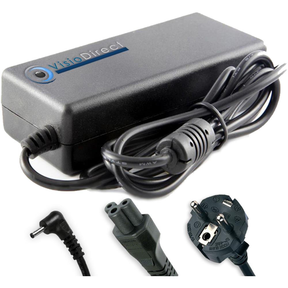 Alimentatore di marca visiodirect per acer swift sf113-31-p697 adattatore caricabatteria. dimensioni connettore: interno: 1.0mm esterno: 3.0mm. Potenza: 45w, output: 19v 2.37a. Cavo corrente incluso caricabatterie ai normi ce.