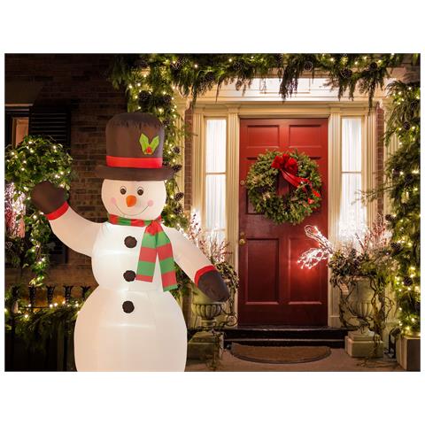 Figura decorativa gonfiabile per esterno con illuminazione. Vivi a pieno lo spirito delle feste con questa allegra decorazione natalizia. Realizzata in soffice ma durevole poliestere di alta qualità, a forma di pupazzo di neve, sorprende per stile originale e funzionalità. Dotata di luci led integrate è un vero colpo d'occhio. La mano sollevata in segno di saluto infine, la rende l'accessorio p...