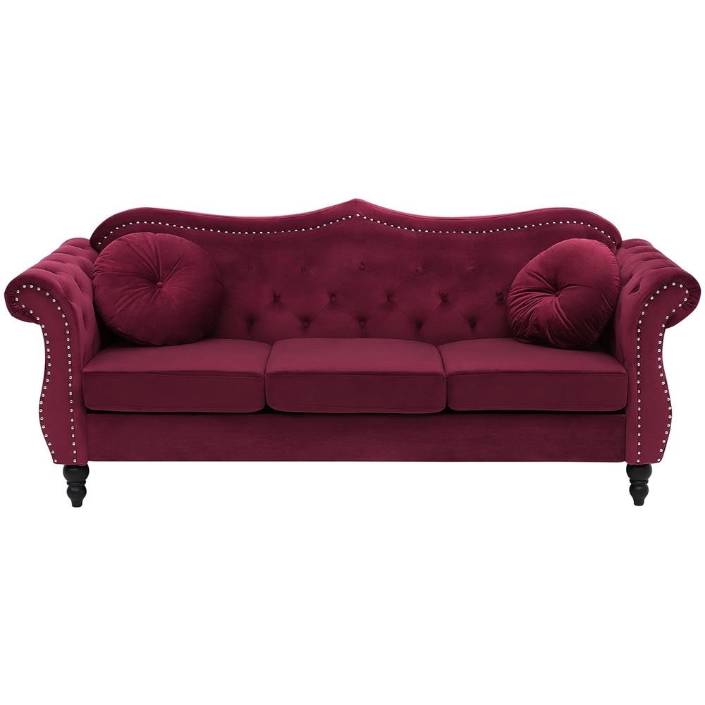 Divano A 3 Posti In Velluto Rosso Scuro Skien