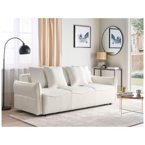 Divano Letto 3 Posti Krama Bouclé Bianco Con Contenitore
