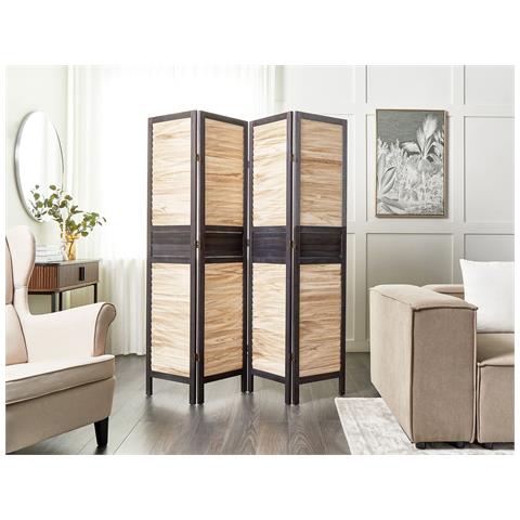 Paravento 4 Pannelli Legno Chiaro E Marrone 170 X 164 Cm Brennerbad