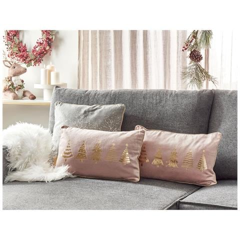 Set Di 2 Cuscini Alsobia Velluto 30 X 50 Cm Rosa Modello Natalizio