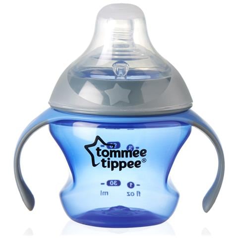Tommee Tippee Transition Sippee Trainer. Tipo di prodotto: Tazza con cannuccia, Età consigliata (min): 4 mese(i), Colore del prodotto: Blu. Volume: 150 ml. Pettini regolatori: 1 pz, Becc. morbido: 1 pz