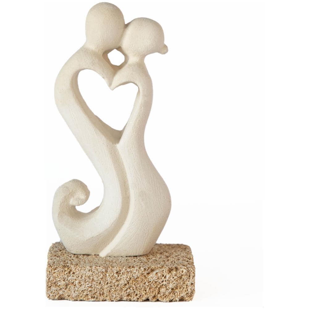 Bomboniera Statuetta AMORINI INSEPARABILI CUORE Piccola in Pietra Leccese salentina scultura decorativa soprammobile misure 12x9 cm