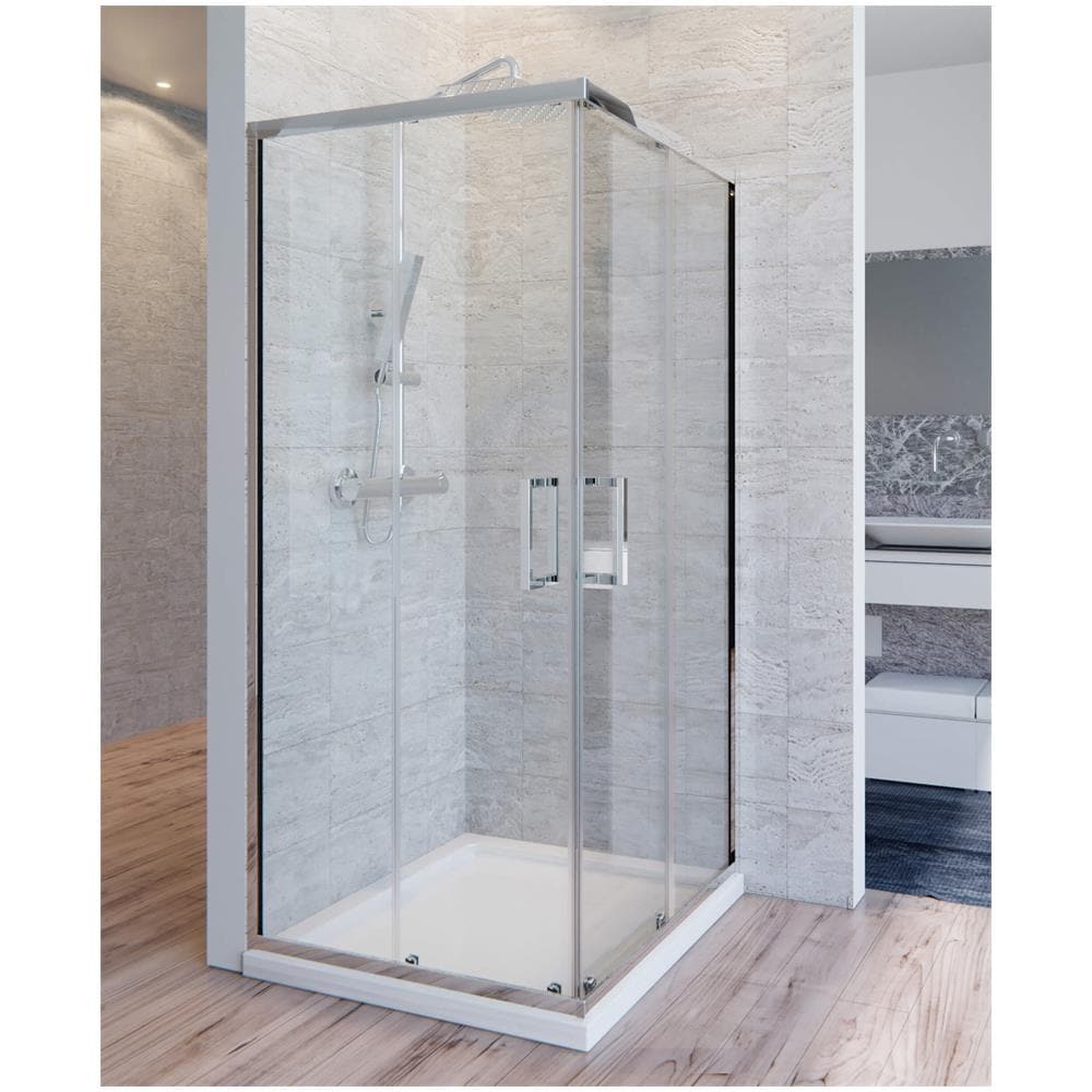 Box Doccia Angolare H195x75x90 Cm 2 Ante Scorrevoli In Vetro 6mm Trasparente Ol Docce Adry