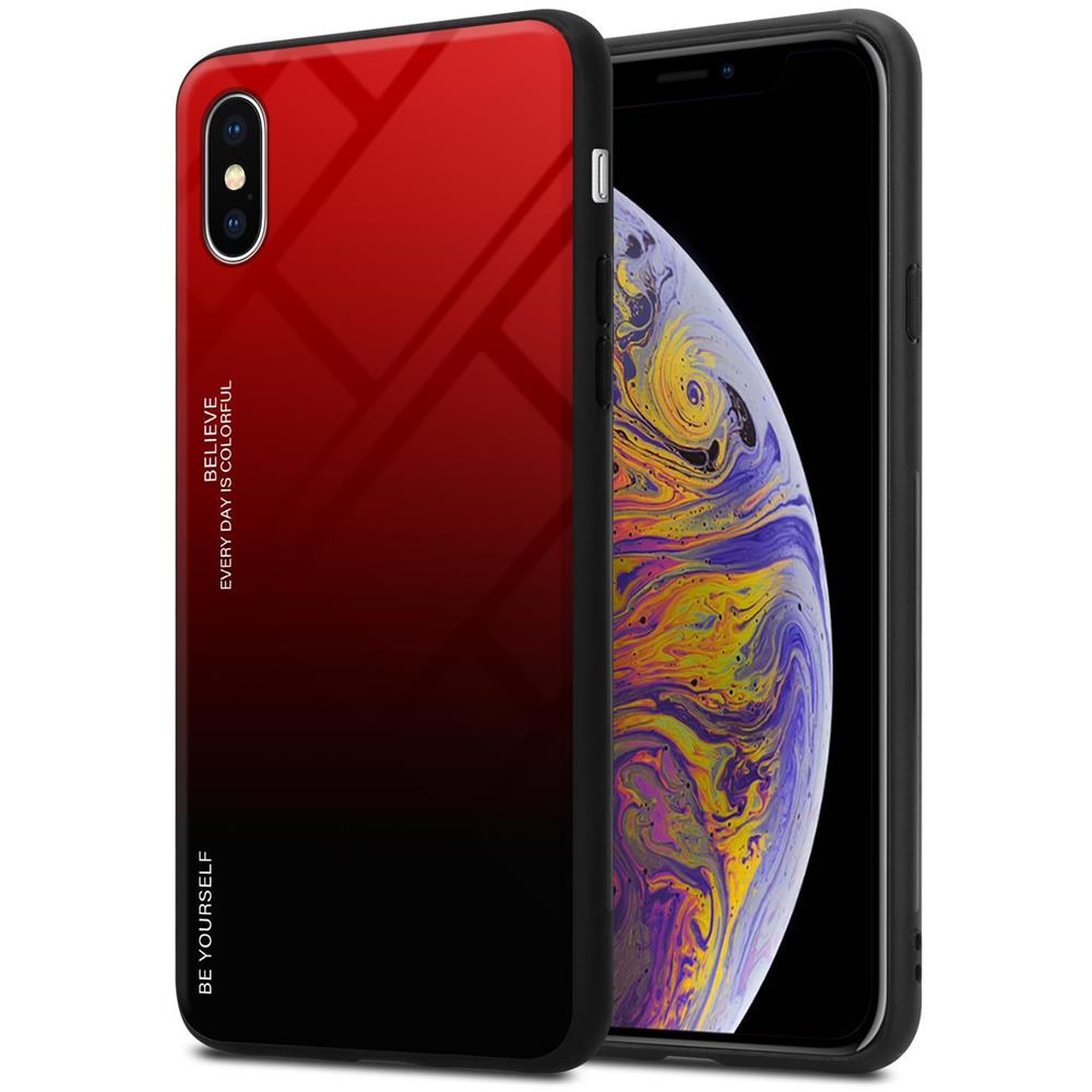 Cadorabo Custodia Compatibile Con Apple Iphone Xs Max In Rosso - Nero - Coperchio Protettivo Bicolore In Vetro Temperato E Silicone Tpu