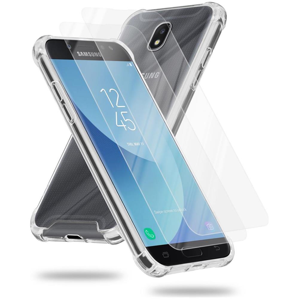 Cadorabo Custodia E 2x Vetro Di Protezione Temperato Compatibile Con Samsung Galaxy J5 2017 In Transparente - Coperchio Protettivo Ibrido Con Bordo In Silicone Tpu E Retro In Vetro Acrilico