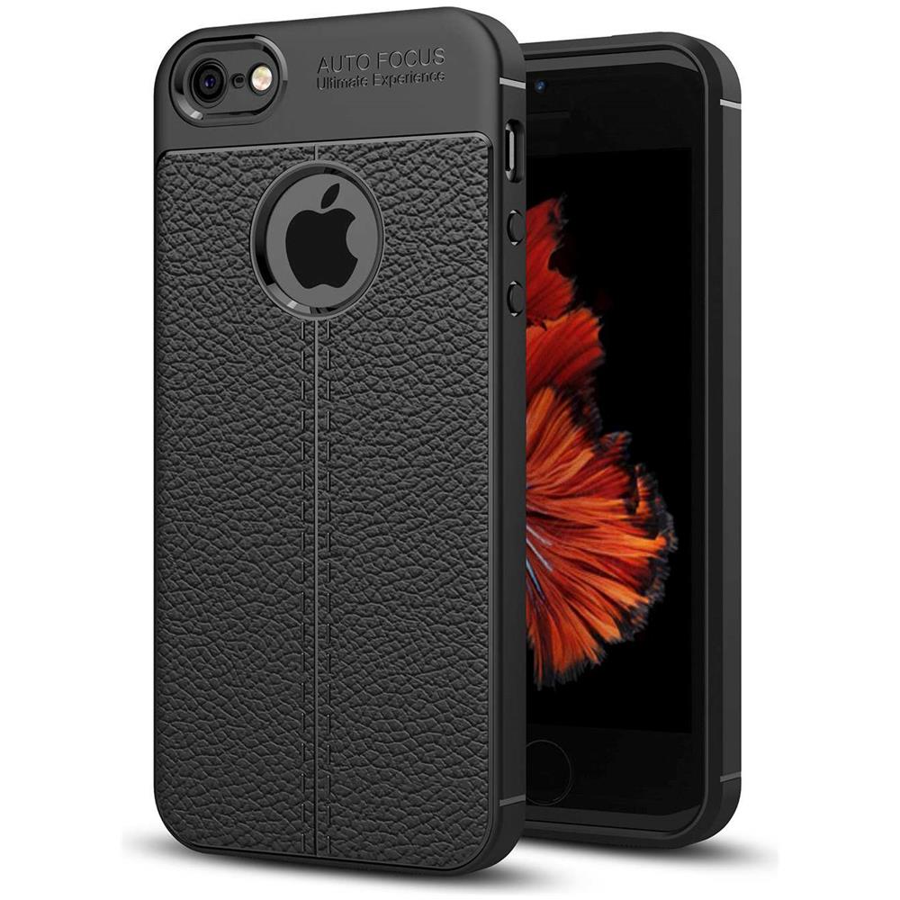 Custodia Compatibile Con Apple Iphone 5 / 5s / Se 2016 In Nero Profondo - Coperchio Protettivo In Silicone Tpu Con Applicazione Di Finta Pelle Nobile
