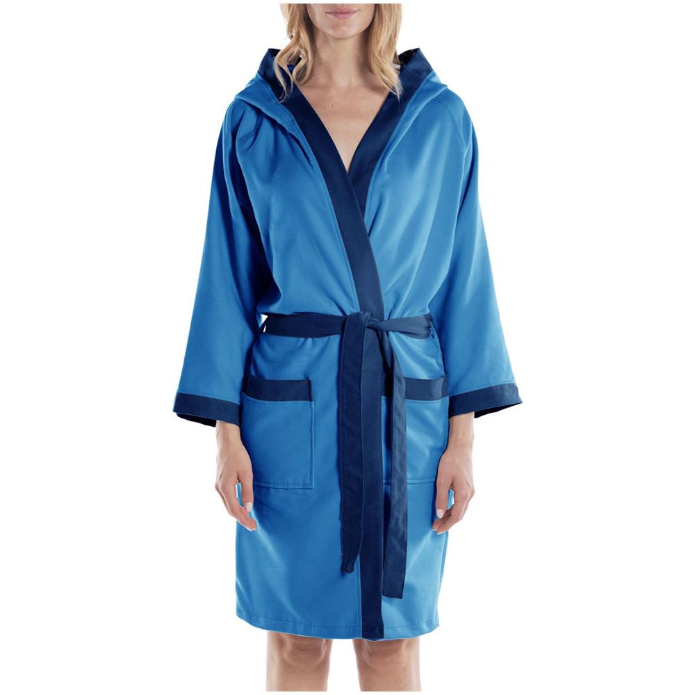 Accappatoio Con Cappuccio Spugnissima Tecno Bicolor In Microfibra Colore Blu Misura Xxl