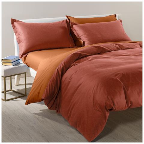 Completo Copripiumino Bicolor In Cotone Colore Marrone Misura Singolo