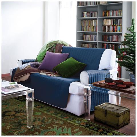 Copridivano Bicolor In Cotone Colore Blu Misura 1 Posti